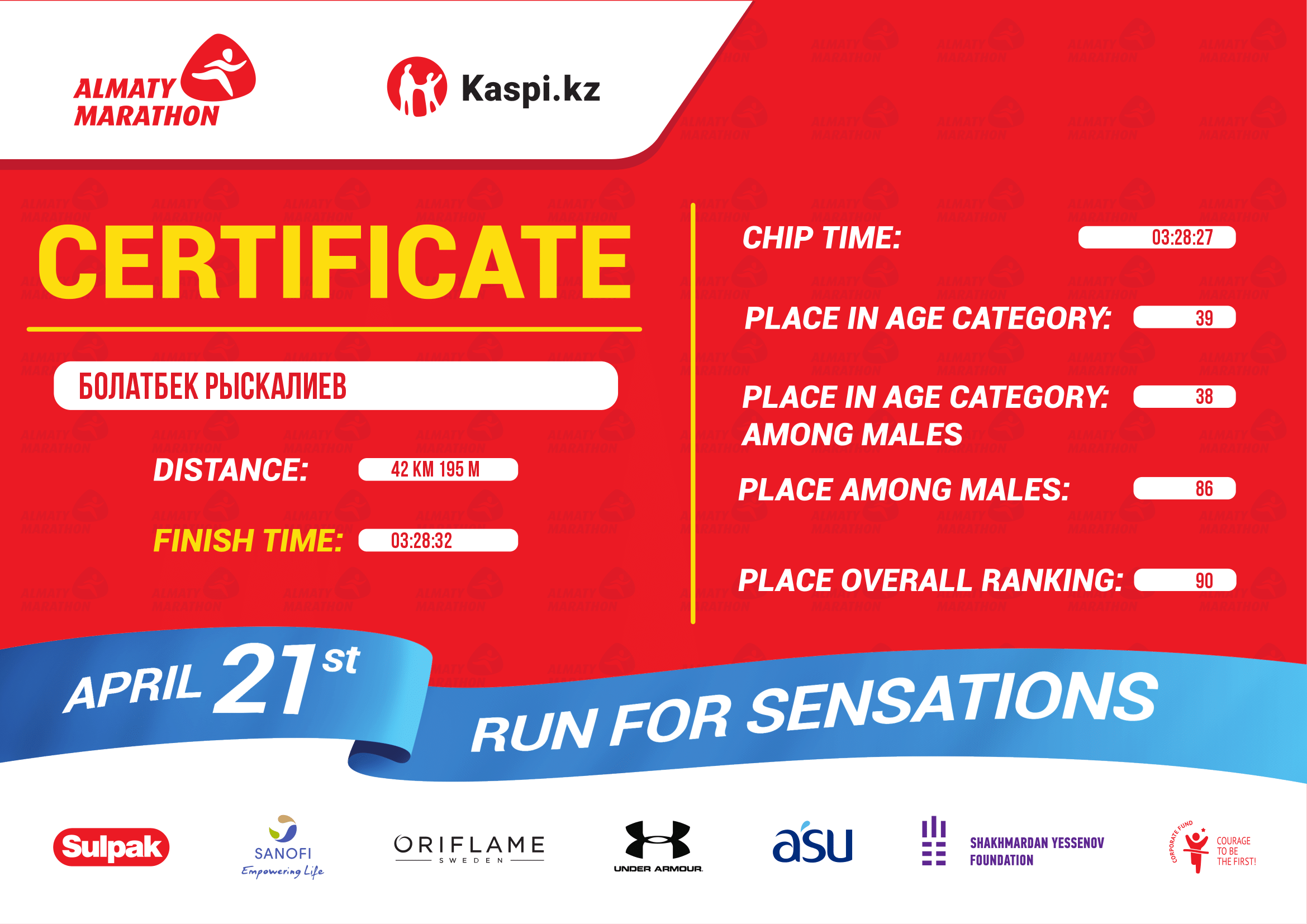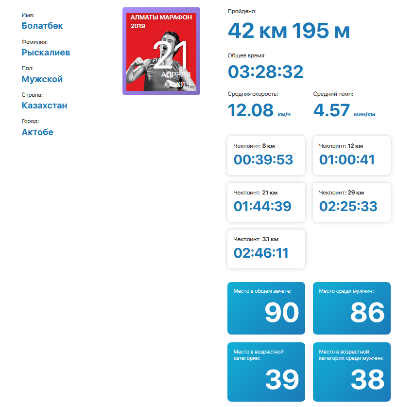 Учитывая тот факт, что в марафоне участвовало 17 тысяч человек – результаты нашего коллеги Рыскалиева Б. впечатляющие.